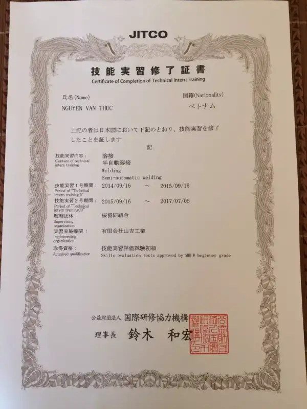 Giấy hoàn thành 3 năm Nhật Bản tiếng Nhật là gì?